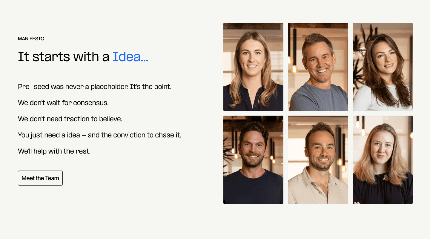 A pre-seed fund dedicated to the ideas of tomorrow, we branded and crafted a digital experience that spotlights their founder-first offering.
